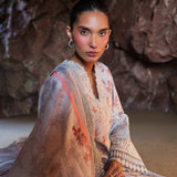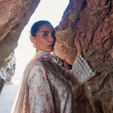 A masterpiece in elegant steel grey, crafted with delicate embroideries on premium lawn for a timeless allure. The beautifully embroidered silk dupatta, adorned with intricate detailing, drapes effortlessly for a touch of refined grace. Paired with chic tailored culotte featuring subtle organza accents, this ensemble strikes the perfect balance between sophistication and modern charm.