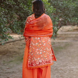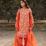 A blend of grace and ease flowy floral prints for effortless summer charm. Delicate embroideries graces to elevate your look. A soft, airy slub cotton net dupatta drapes beautifully, with an embroidered pallu that enhances its ethereal appeal. Completing the ensemble, the relaxed cotton cuoltte ensure breathable comfort, making it perfect for warm days.