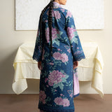 A vibrant floral print and a beautifully draped