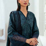 The set offers a harmonious blend of digital prints and exquisite embroidery on viscose, perfect for crafting a personalized statement piece. It features schiffli embroidered sleeves and front hemline borders, with a lavish digital printed twill shawl.