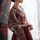 Nyra is a tapestry of timeless charm, woven with meticulous craftsmanship, rendered in an exquisite shade of maroon and adorned with subtle embellishments that speak volumes. This is definitely going to turn heads this season.