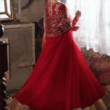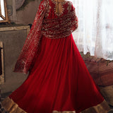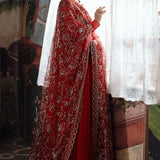 Elevate your presence with this red kalidaar masterpiece, embodying a perfect blend of tradition and contemporary allure featuring intricate embroidered details. The kalidaar silhouette takes center stage, draped in a captivating shade of red that resonates with passion and poise.