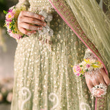 Introducing Namar —a captivating fusion of artistry and elegance. This ensemble features hand-embellished details on chiffon, creating a luxurious, textured look. The sophistication is elevated by a net dupatta, beautifully embroidered and sequinned to add a touch of glamour and refinement. Perfect for making a standout impression at any event.