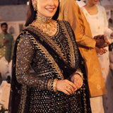 - PRODUCT DETAILS: Embrace the celestial beauty with Shehnai Collection’s onyx beauty featuring a black Peshwas adorned with blingy and glittery details. The light gold two-toned zariwork embroidery graces the front and back bodice creating a celestial symphony adorned with matching sequins. The kalis for the Peshwas add a touch of traditional elegance while the hemline is adorned with an intricately embroidered border. The sleeves with their border detailing add a hint of starry allure. Complete your celestial look with the embroidered dupatta with four sided borders and let the ensemble transport you into a magical world of elegance and charm.