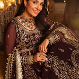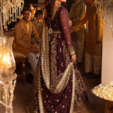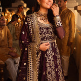 - PRODUCT DETAILS: Behold the Purple Majesty Dreamweaver, a peshwas that weaves dreams into reality. The heavy champaign zariwork and sequins reminiscent of contemporary motifs adorns the bodice and hem creating a celestial allure. The embroidered kalis gracefully flow capturing the essence of a starlit night while the intricate lace detailing on the front and back neckline adds a touch of mystery. Let the embroidered dupatta with its two side borders wrap you in a dreamy aura making you the embodiment of twilight elegance