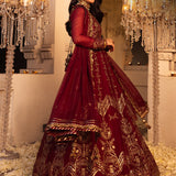 - PRODUCT DETAILS: Indulge in the allure of timeless beauty with our Maroon Peshwas from ‘Shehnai Collection’. The 3mm sequins and antique gold zariwork embroidery create a captivating tapestry on the embroidered bodice and kalis adorned with contemporary motifs. The embroidered border for the bodice hem and hemline combined with the sleeves featuring borders adds a touch of opulence. Paired with a matching dupatta showcasing two side borders, this ensemble is an expression of grace and sophistication