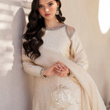 Eid is a time for classic elegance, and Guzel embodies that spirit. This off-white outfit features tissue silk fabrics, adorned with intricate hand embroidery and sequin beads, complemented by an Organza dupatta. Ideal for those who crave timeless beauty during the festive season!