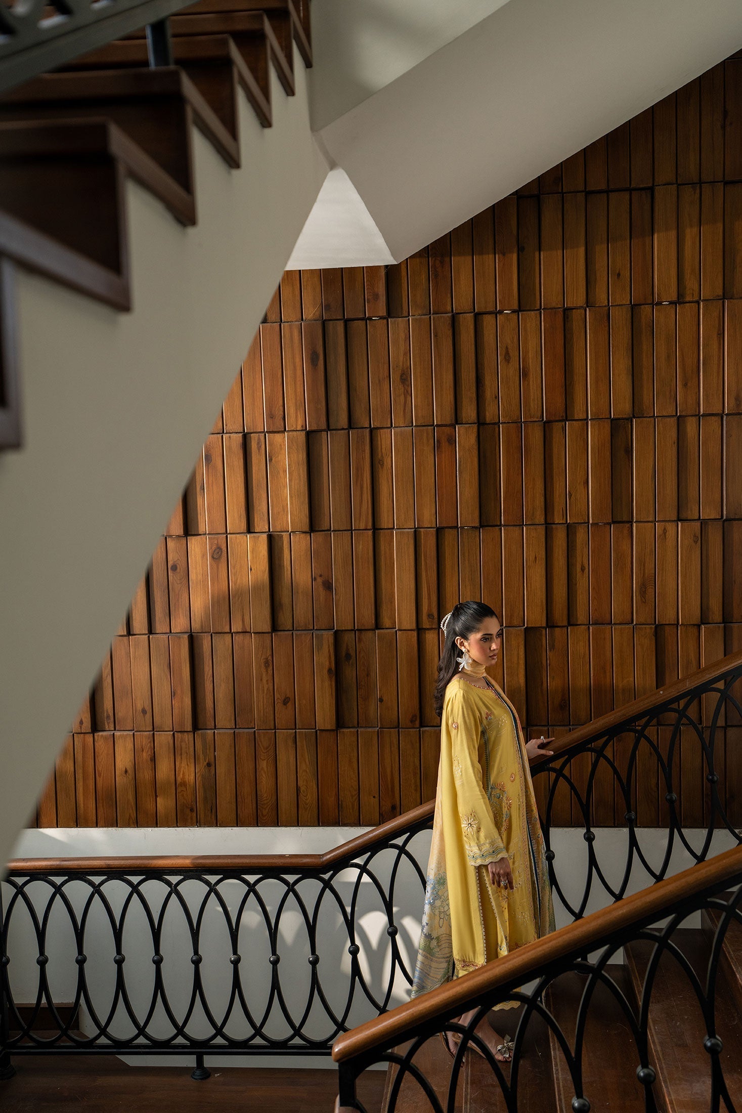 Radiating warmth and elegance, this mustard three-piece luxury ensemble is adorned with delicate embroidery, intricate embellishments, and embroidered laces, creating a timeless statement. Paired with exquisitely embroidered straight pants and a digitally printed dupatta featuring subtle embellishments, this ensemble embodies the perfect blend of tradition and contemporary sophistication.