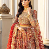 Reinvent the aura of the wedding season with this fabulously feminine maroon lehenga Choli with a fully composed bodice. This delicately crafted outfit is the true essence of tradition with a touch of regality, giving finishing touches by adding crystal bricks, crystal drops, sequins, pearls, batki, beads and other embellishments, accompanied by raw silk body lining and lehnga. This timeless outfit will remain a mainstay in your wardrobe every season.
