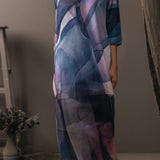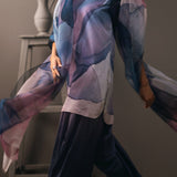 OTT abstract print ensemble, designed to captivate and enchant. The crew neck kameez, crafted from luxurious grip georgette, features a vibrant abstract print in a stunning blend of colors that create a visual masterpiece. Paired seamlessly with a gradient shalwar that blends harmoniously. The ensemble is completed with an organza dupatta, adorned with an abstract print.
