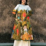 A beautifully crafted lawn drape shirt, made from premium-quality fabric and embellished with elegant digital printing, inspired by the serene beauty of miniature gardens in refined hues.