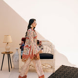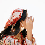 A fun little number to add to your wardrobe. This printed short shirt silk set has gorgeous little details and comes with a complimentary scarf.