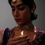 Exquisitely crafted navy blue long peshwaz , adorned with intricate detailing and elegant floral motifs. It is paired with Navy blue block printed motifs' sharara and organza duppatta. A flawless choice for the upcoming festive season , promising grace and sophistication.