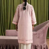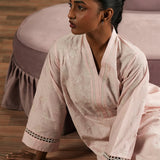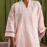The Pink Cotton Embroidered Kurta from our Spring The Tea '25 Collection features a straight silhouette, V neckline, and full-length embroidered sleeves.€‹