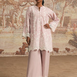 The Lilac Cotton Embroidered Co-ord Set from our Spring The Tea '25 Collection features a straight silhouette, round neckline with a slit, full length embroidered sleeves, paired with embroidered izaar.€‹