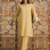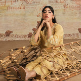 The Sand Cotton Embroidered Co-ord Set from our Spring The Tea '25 Collection features a straight silhouette, V neckline, embroidered sleeves, paired with embroidered izaars.€‹