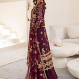 - DISCRIPTION: This stunning outfit features luxurious embroidered chiffon panels on the shirt and sleeves, enhanced with delicate embroidered organza laces for a touch of sophistication. The dupatta, crafted from embroidered net and adorned with organza lace, adds a graceful finishing touch, while the dyed raw silk trouser completes the look with understated luxury.
