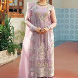 Embroided organza panel long shirt with pastel embroidery threads and zari. Embellished with sitara pearls and crystals ornamented with crystles hanging on neck line. Pk raw silk crushed pants pair with organza duppata