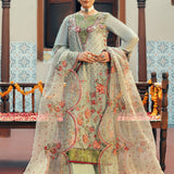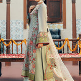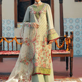 Step into timeless grace with our sage green chiffon long shirt, adorned with intricate multicolor embroidery and embellished with delicate pearls and tassel details along the neckline. Paired with a scalloped organza dupatta, richly embroidered to enhance its beauty, and classic PK raw silk pants, this ensemble captures a perfect blend of elegance and sophistication. Ideal for weddings and festive gatherings, "Sage Elegance" exudes refined charm, celebrating Jamni€™s commitment to luxury and tradition.