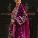 Introducing Lavena, A luxurious lawn dress in a stunning plum hue. The intricate floral and geometric embroidery enhances its elegance, while the carefully designed borders offer a refined, polished touch. The perfectly matched dobby trousers provide both comfort and style, while the embroidered dupatta, with its scalloped borders, completes the ensemble with an added layer of grace. Lavena is the perfect balance of traditional charm and modern refinement, offering an elevated and versatile look.