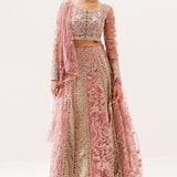 Adorn yourself in the epitome of grace with this enchanting ensemble. A radiant pink attire, intricately hand-embellished with shimmering sequins, exudes opulence and elegance. Paired flawlessly with a sequinned net dupatta, casting a celestial glow, and a dyed raw silk sharara, this ensemble captures sophistication and allure, celebrating a harmonious blend of tradition and modern glamour.