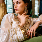 Radiating elegance in white, "Moti" is crafted from luxurious raw silk. A timeless design that embodies grace and sophistication.