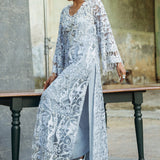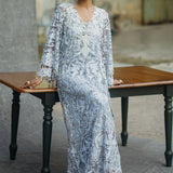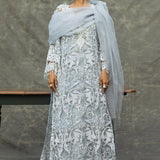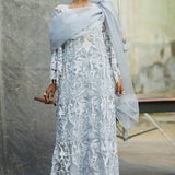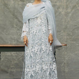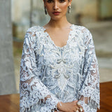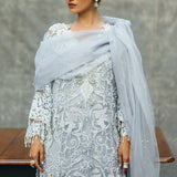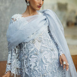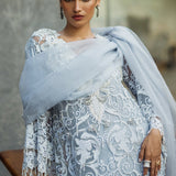 A symphony of elegance and opulence. This stunning design features a meticulously embroidered net shirt, complemented by luxurious raw silk trousers. Paired with a diaphanous organza dupatta adorned with intricate embellishments, Iris exudes sophistication and charm. The perfect choice for making a bold yet graceful statement this season.