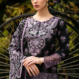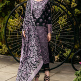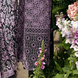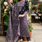 A symphony of elegance in timeless black. This sophisticated ensemble features a chikan embroidered lawn shirt with intricate organza lace sleeves and a sequinned neckline. Adorned with crochet details on side slits and finishing balls at the daman, it's paired with a dyed cotton trouser and printed chiffon dupatta for a look that exudes refined glamour.
