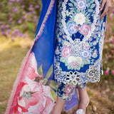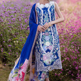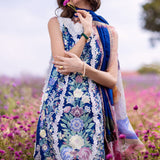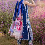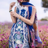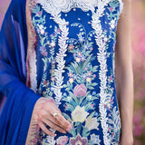 Blue Morpho a masterpiece rendered in blue, captures the essence of elegance and style. Crafted with intricate chikan embroidery on soft lawn fabric, the outfit is a testament to exclusive artistry and exquisite detailing. The digital silk dupatta adds a touch of luxury and sophistication, enhancing the overall allure of the ensemble.