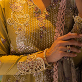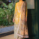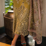 Delice, where elegance meets sunshine. The ensemble is adorned with intricate embroidery and delicate details, exuding timeless sophistication. The schiffli border on the front adds a touch of ethereal charm, while the printed and embroidered dupatta adds a playful twist to classic elegance.