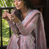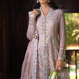 Embrace sophistication with this beautifully detailed outfit, featuring hand-embellished embroidery and sequins on the neckline lace, front and back yokes, and sleeves. The set includes a raw silk trousers, and a dupatta with intricate embroidered borders, complemented by exclusive handmade sleeve tassels and luxurious golden samosa lace for a stunning, refined finish.