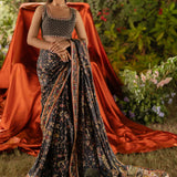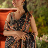 Saree : Digital Printed Silk Saree Long Side Border