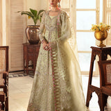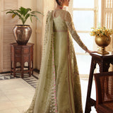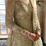 Drape yourself in a stuning Veronese Green floor-length organza gown, ‘SIBEL’ where every stitch whispers timeless sophistication and grace. The double panel Organza gown is coupled with opulent Sharara bottom, adds a touch of elegance. The airy draped dupatta adorn with sequence print, making it perfect for your auspicious ceremonies. The Festive Edit 24’