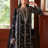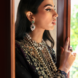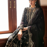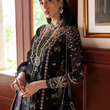 In the shadows of enchantment, this dress emerges a black beauty and unravels the enigmatic charm. The organza open-paneled shirt, decorated with the fascinating cutwork technique, dances with classiness and will make you the star of every intimate gathering. Further paired with crushed pants and an organza dupatta of ethereal proportions of tye & dye color merges in border patches which gracefully entwines with a culotte and stitched loop details, painting an artful symphony. Embrace the allure of Noir, where poetry and fashion converge.