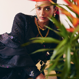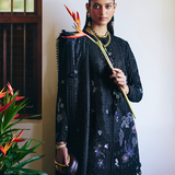 - Midnight Black cotton shirt featuring a close-to-neck neckline. It has marori detail on the front, with tassels hanging from the neck. The shirt includes embroidery made with various techniques, and lace details elevate its appearance. Moroccan floral embroidery completes the look, and the sleeves are fitted. It comes with a slip.