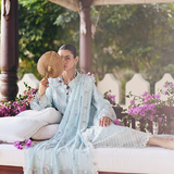 - Chiffon aqua dupatta includes hints of contrasting colours that complement the culottes. It is decorated with embroidery and lace, and it is completed with handmade tassels.