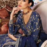 Three piece stitched outfit , like something out of a Mughal dream, Kaasni is a true vision of elegance. This poetic angrakha Peshwas has an intricately embroidered bodice and sleeves, with impeccable miror work tilla and sitara work and all over the jaal graceful dupatta with four sided border. This traditional ensemble is completed with a raw silk churidar.