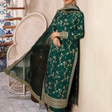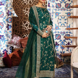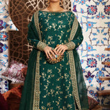Three piece stitched outfit including shirt trouser and dupatta. Fabric for shirt and trouser. is raw silk and Dupatta in organza four sided border throughout it with hand embellishment embroidery and mirror work. This outfit is embellished from front, back and sleeves.
