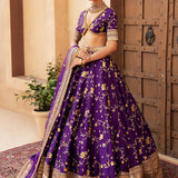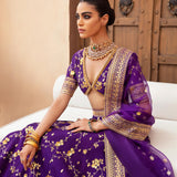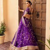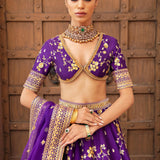 "MAHRANG" A refreshingly vibrant violet Color lehenga that is sure to make heads turn. Its beauty is heightened with our signature craft of tear drop shape hand embellished mirror work on it. The neckline of the choli is exquisitely detailed with pearl, dabka and Crystals. The sleeves of the perfectly-cut choli has embellished border, which echo the lehenga & its rich look.