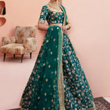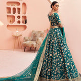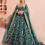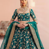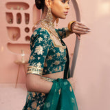"Shahrbaanu" Carefully fastened by our artisanal experts, the pattern create a vibrant bed of flowers consists of thread and tilla motifs. Square shape wide neckline is embellished intricately with zardozi and crystals. A piece from our expanding conscious couture carrying the legacies of artisans and ancient craft, paired with same color four sided border dupatta.