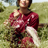This red shirt is the perfect pop of color for fall. It pairs beautifully with a solid shalwar and an embroidered shawl.