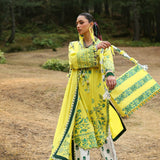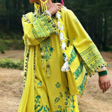 Elaya – Bold, fresh, and straight off the trend charts! Dipped in a high-fashion neon lime hue, this electrifying ensemble is all about making a statement. Intricate tribal-inspired embroideries in lush shades of sage and green add depth, while the tonal voile dupatta, edged with delicate embroidery and exquisitely detailed pallus, brings effortless elegance. Paired with the coolest printed trousers, Elaya is the ultimate blend of tradition and trend—made for the Zaha girl who turns heads with her fearless summer style.
