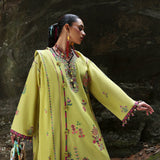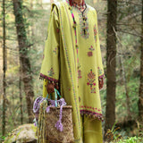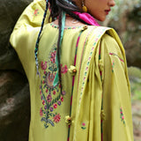 Radiating effortless charm in boho lime yellow, Rhea this statement ensemble is a modern ode to artisanal elegance. Intricate tribal embroideries in pink, sage, and brick dance across the fabric, while delicate laser appliqué work adds depth and dimension. The airy voile dupatta, adorned with embroidered motifs, drapes like a dream, complementing the sleek trousers finished with an embroidered sage border. A meticulously detailed back motif ties it all together, making this the perfect look for the modern muse who embraces tradition with a chic, contemporary edge.