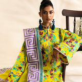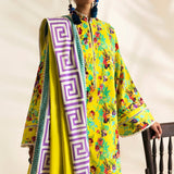 Paired with crisp white pants for that fresh, sunlit feel, the look is perfected with a light-as-air voile dupatta. Featuring a delicate lavender block print on a white base, framed by a celadon border, it’s the ultimate mix of effortless charm and polished finesse.
