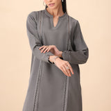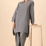 Chill out in style with Ashlyn, the ultimate charcoal grey matching coords set that mixes comfort with cool. The shirt features bold thread stitch details, giving it a relaxed yet edgy vibe, while the cuffed sleeves add a modern twist. Paired with sleek tonal pants, this set is the perfect combo of laid-back luxury and street-smart flair.