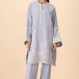 Introducing Elara – the ultimate go-to look for fashion-forward brunches and effortless days out. This two-piece embroidered set in a dreamy ice blue hue is designed to turn heads. The boxy, oversized shirt adds a relaxed yet polished vibe, featuring intricate floral embroidery that elevates its playful charm. Paired with sleek, tailored tonal pants, the ensemble creates a flattering, modern silhouette that's both comfortable and chic.