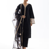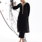 Minimal yet Exquisite! This ensemble is accentuated with delicate beige embroideries on sleeves and dupatta. It is paired with matching pants to complete the look of this ensemble.