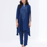 Make a bold style statement in this exquisite ensemble, featuring a detailed neckline. This cape is paired with matching pants, completing your look for every day soirees.