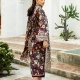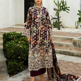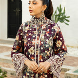 This stunning purple 3-piece suit featuring a unique blend of floral print and intricate white chikankari embroidery. The detailed work adds a touch of traditional elegance to the modern design. Comes with a matching floral print chiffon dupatta.