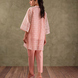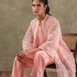 The Peach Pink Embellished Organza Coat is the epitome of grace, featuring delicate embellishments that shimmer softly against its gentle hue.